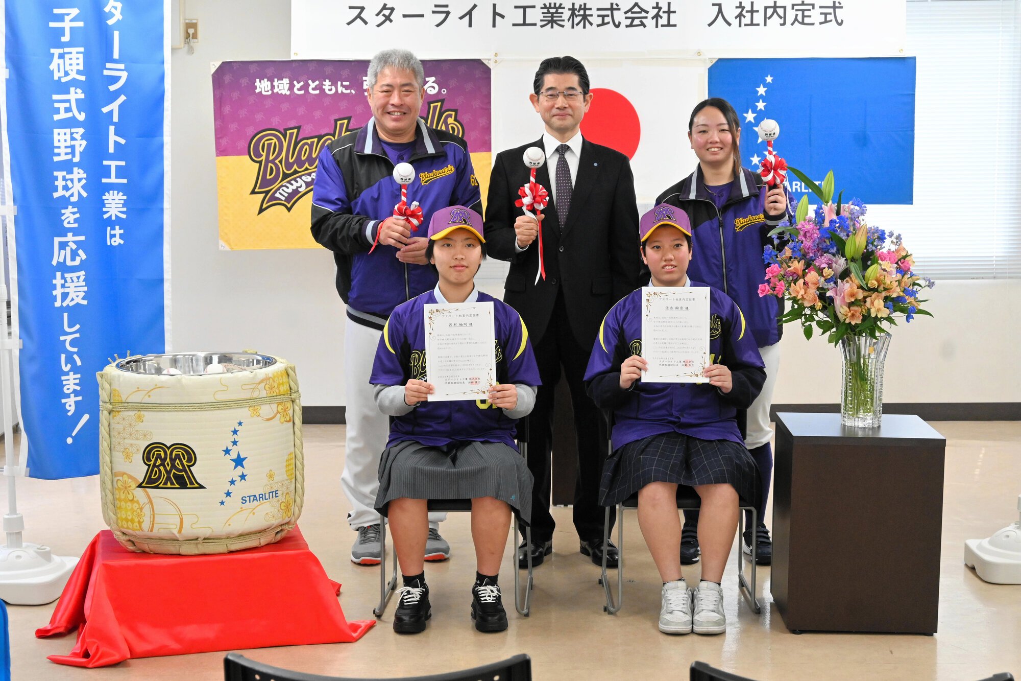 女子野球と仕事、両立を 広島の工場で「アスリート社員」の内定式